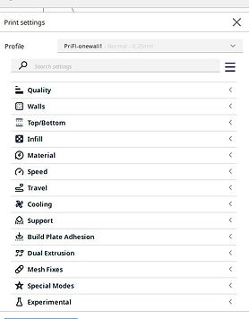 Auf Basis unseres Cura Druckprofils PriFL-onewall1 können Sie Durchflußmenge und Drucktemperatur anpassen und für Ihren Drucker einstellen. Ändern Sie, wenn nötig, die Durchflußmenge, um eine optimale Wandstärke von 0.4 - 0.5mm zu erreichen.